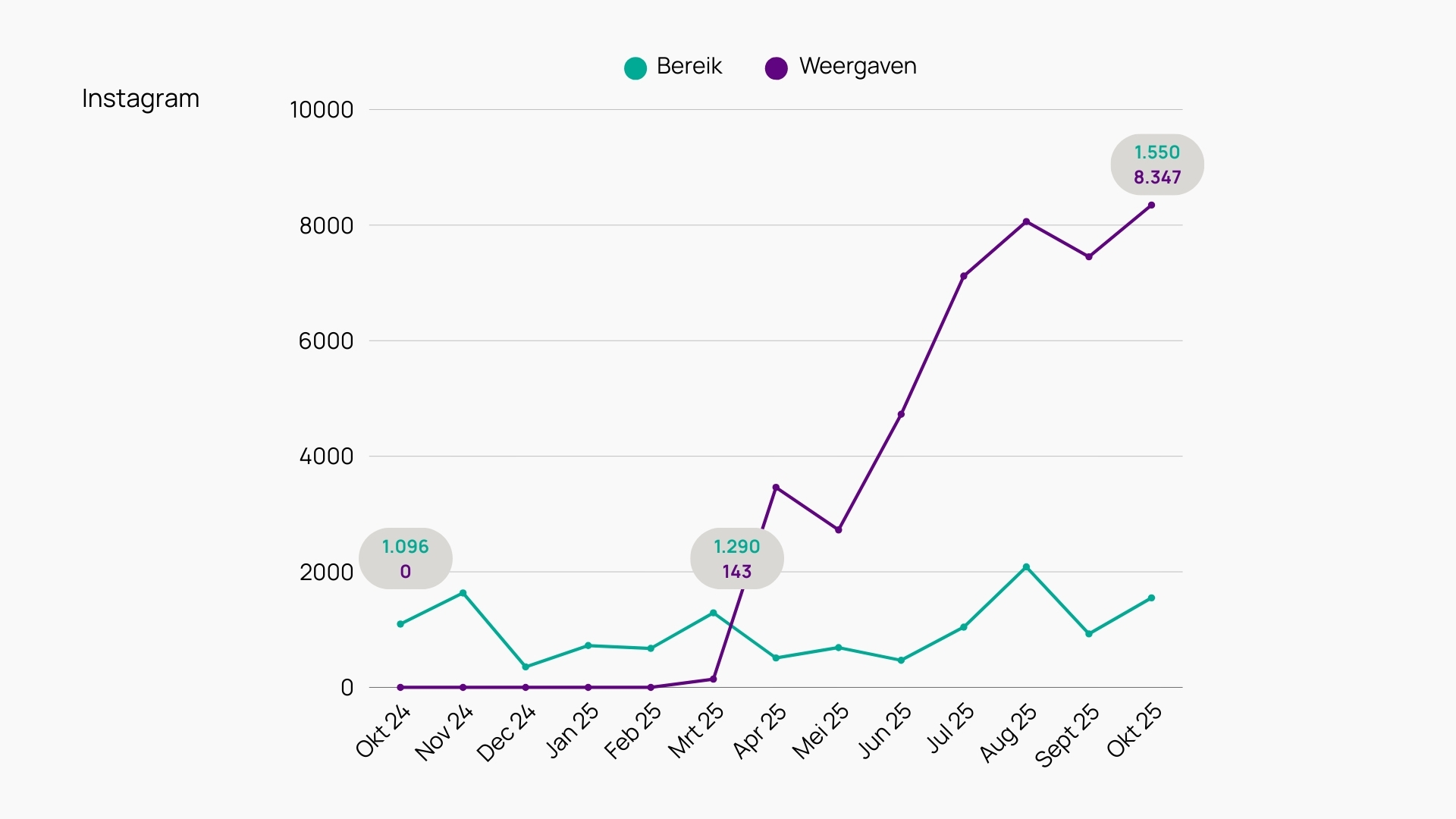 From July onwards, video became a central pillar of the content strategy. By increasing the use of reels and dynamic video clips, reach grew visibly across both platforms. The focus on video led to higher visibility, stronger engagement and multiple spikes in follower growth, making it an essential format within the broader social media strategy.