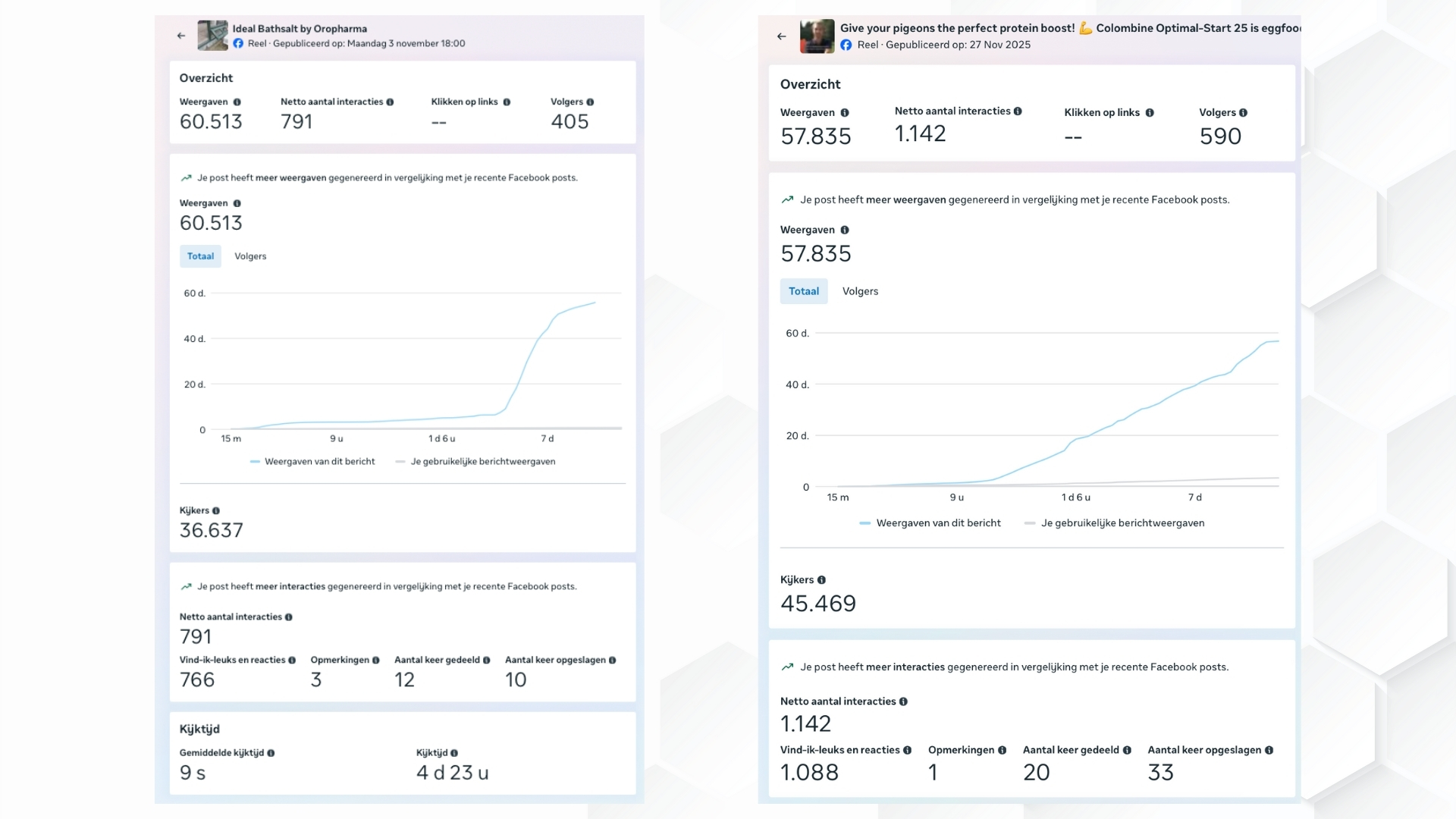For Versele-Laga Pigeon, Komate delivered several viral Facebook videos that strongly highlighted product value and visual storytelling. Thanks to short, impactful video formats, the posts reached tens of thousands of viewers within days, generated exceptionally high engagement, and resulted in a significant increase in followers.